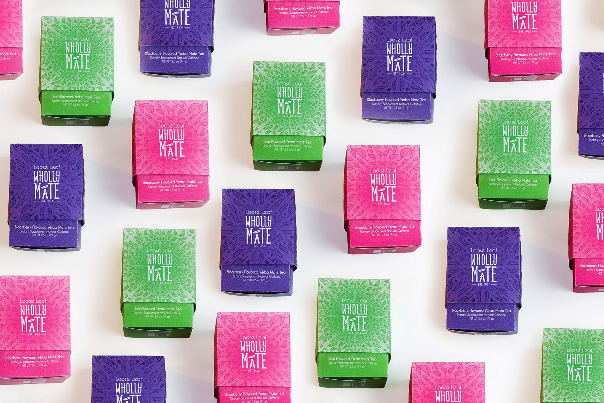 Yerba mate is packed with caffeine, making it a great alternative to your morning coffee. The illustration on the box captures the energy boost from this tea, helping to further establish the Wholly Mate brand.